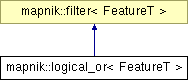 Inheritance diagram for mapnik::logical_or< FeatureT >: